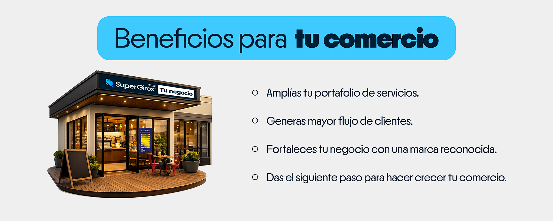 Conviértete en un aliado SuperGiros Amplía la oferta de tu comercio con un servicio que mueve clientes todos los días.
